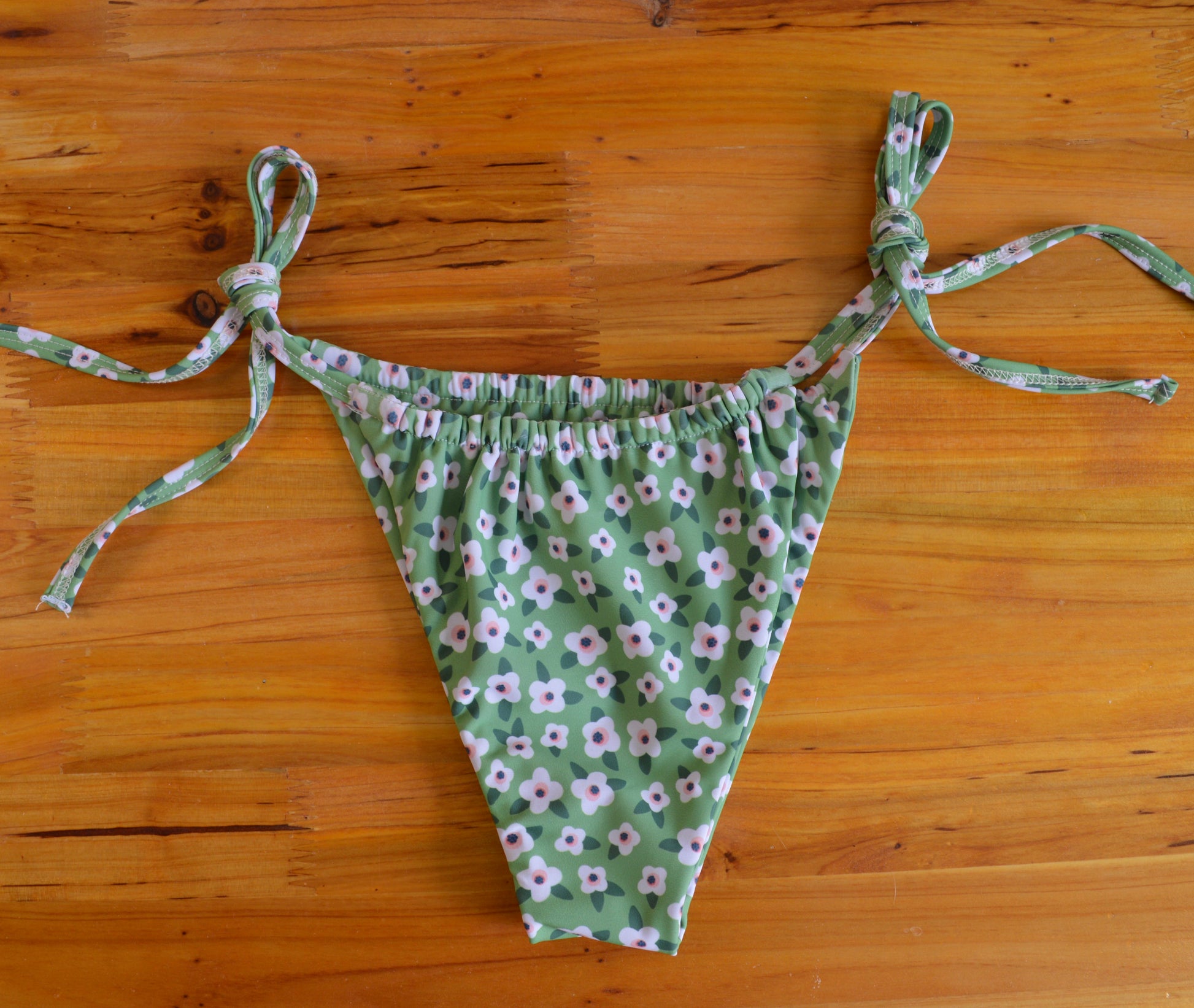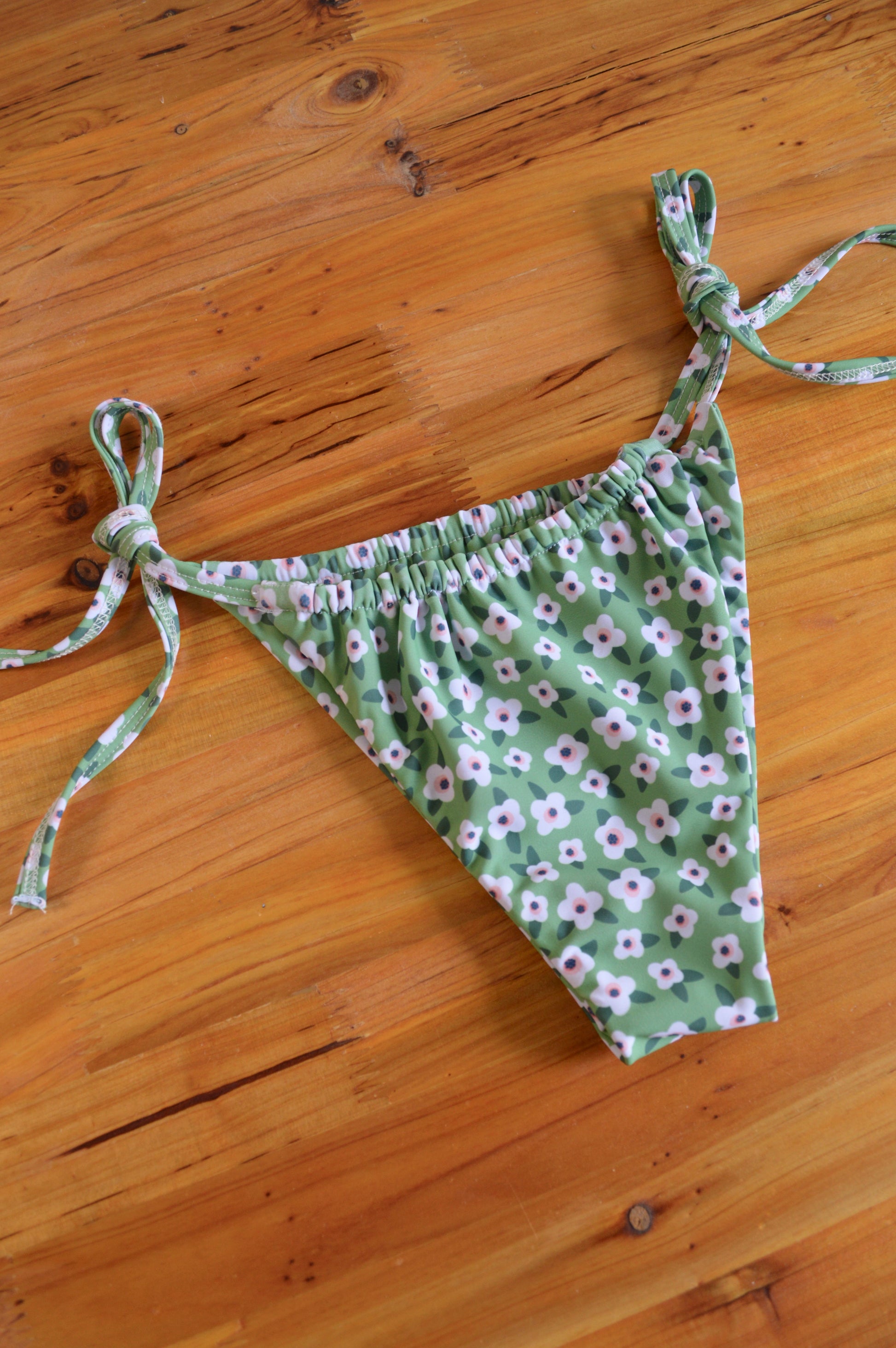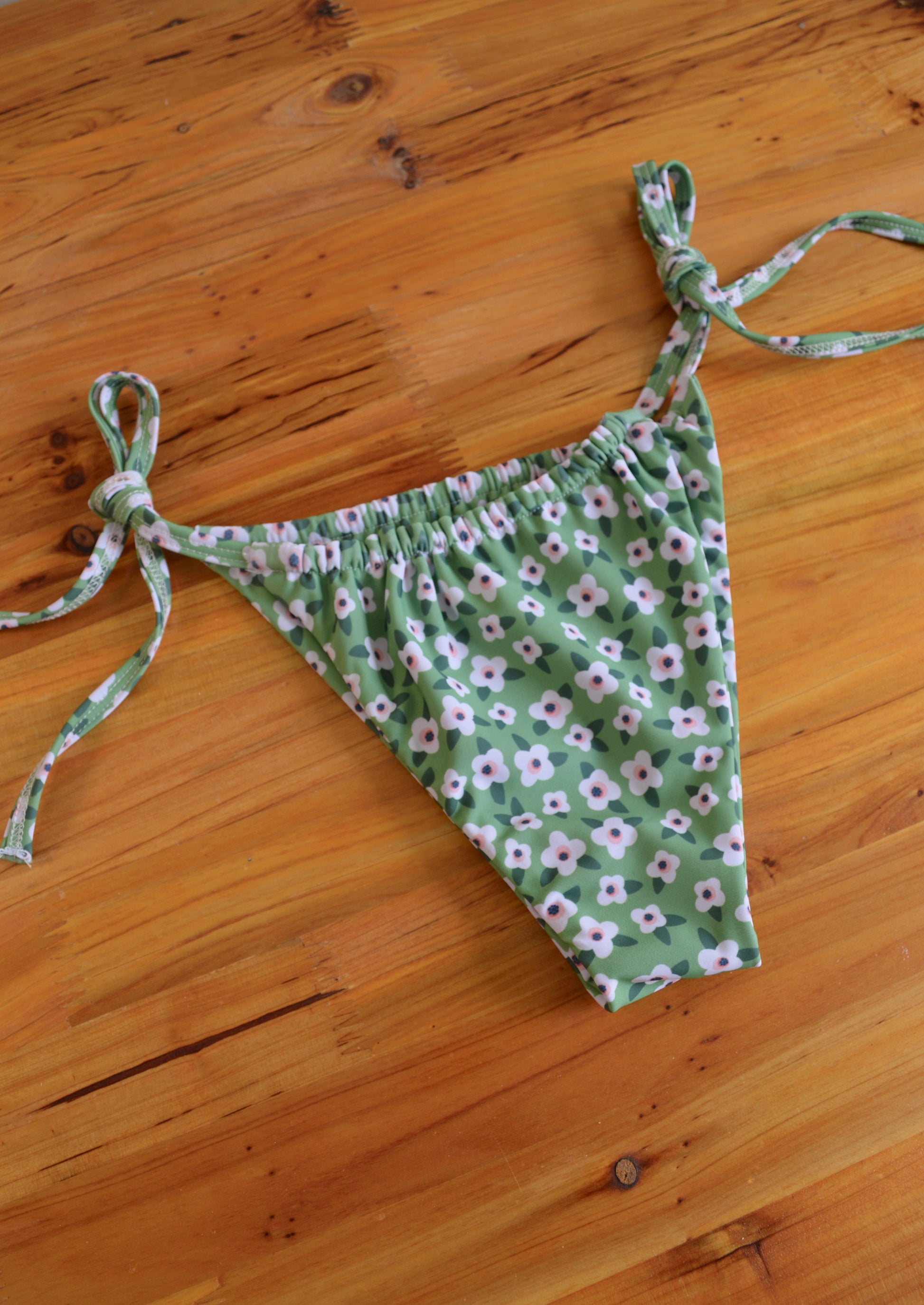 Cute, comfy, and a little bit cheeky—the ruched bikini bottom is made for sun-soaked days. Its versatile fit lets you wear it mid-rise for a classic look or low on the hips for something a little more daring. The soft green floral fabric features a dreamy blend of white and pink blossoms, all in a super soft, high-stretch material that flatters from every angle.