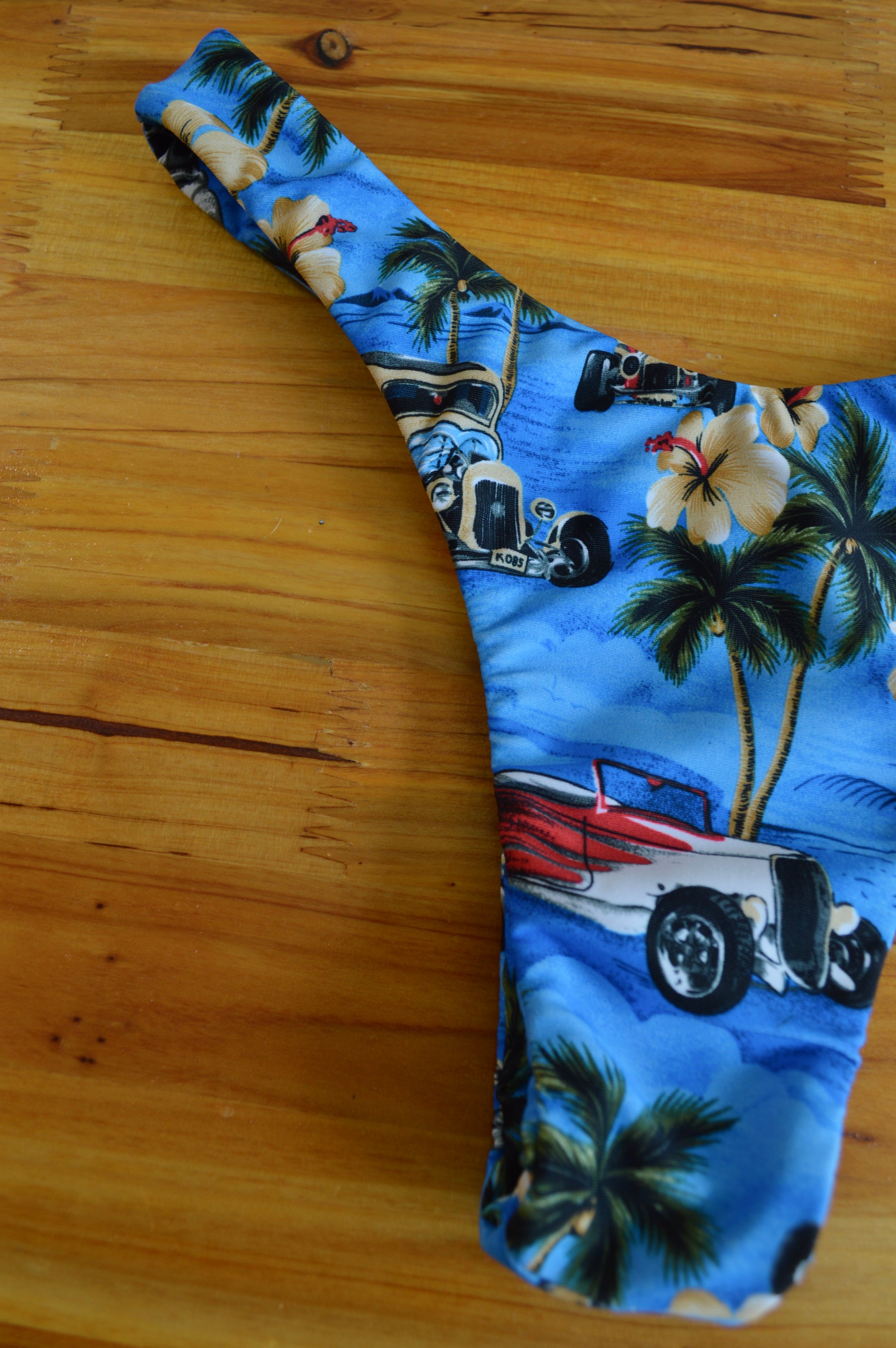 The Hawaiian Hot Rod Bottom gives just the right amount of cheek. With a mid-rise fit and minimal Brazilian coverage, this bottom is all about enhancing your natural shape while keeping things playful and bold. The signature print—featuring a retro truck and swaying palms—adds a dreamy touch of wanderlust, while the luxe stretch fabric moves with you through every splash and stride.