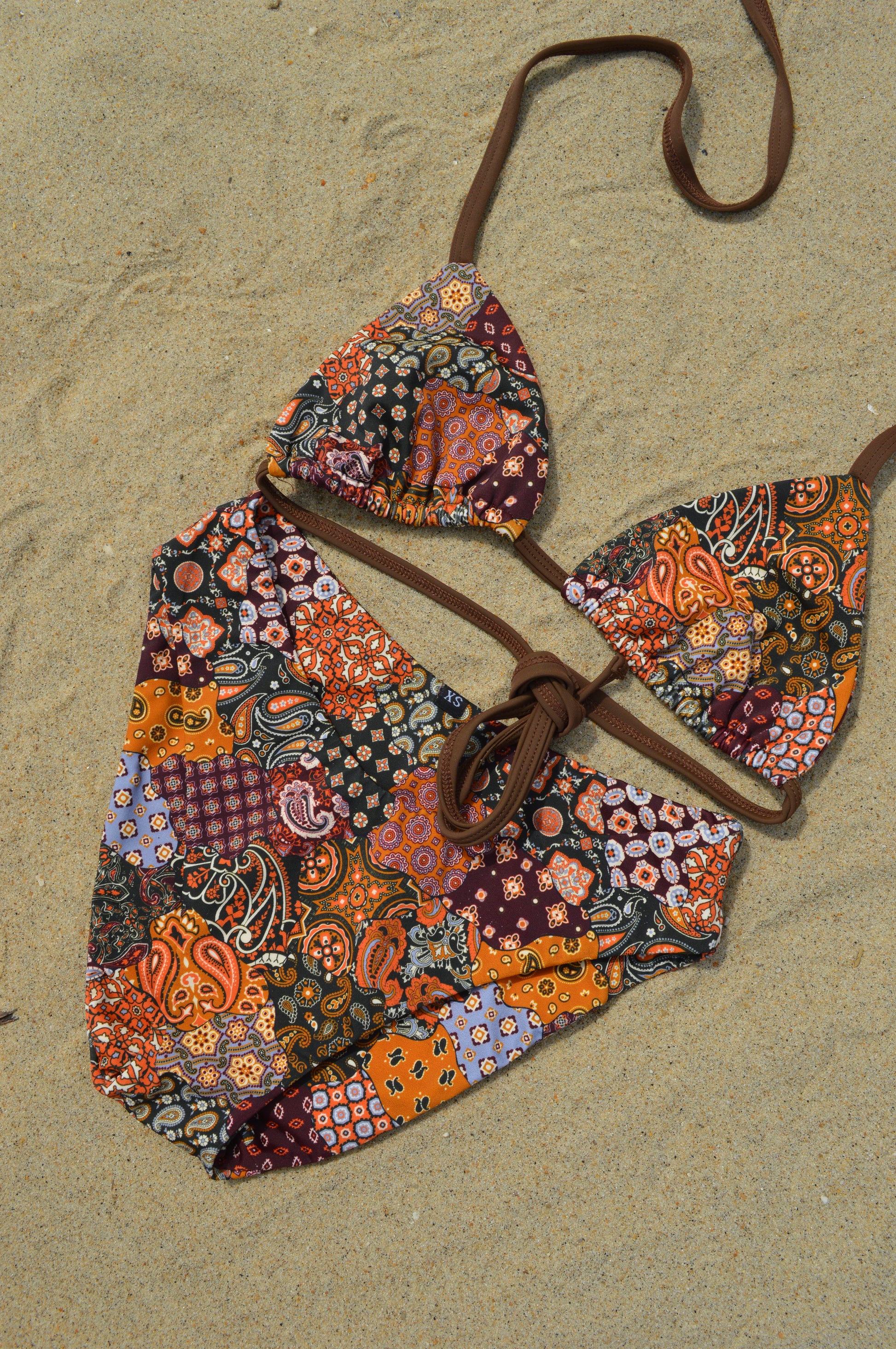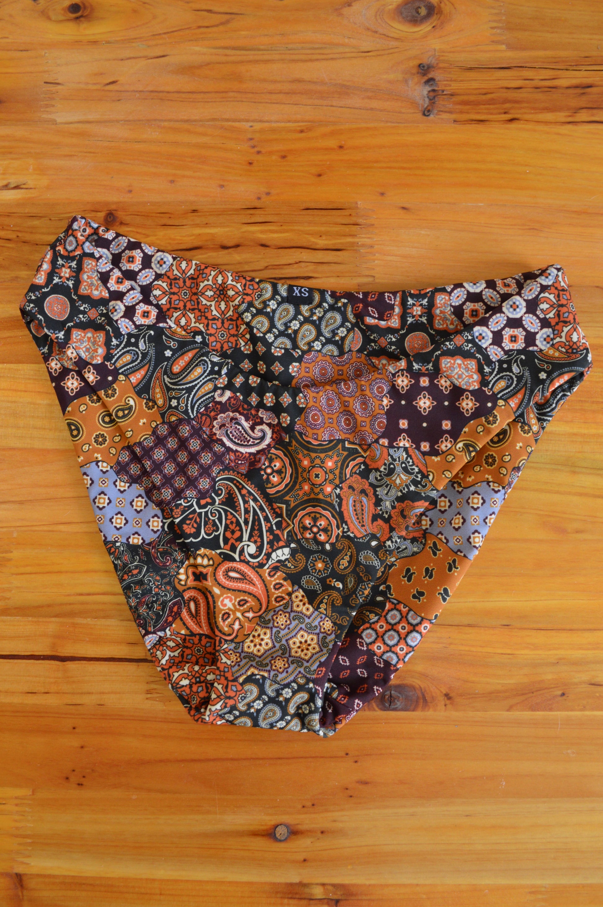 Keep it bold, keep it effortless. The Patchwork Bikini Bottom brings a perfect mix of vintage edge and modern confidence, with rich maroon, burnt orange, and crème tones in a striking patchwork print. Designed for full coverage with a mid-rise fit, this bottom hugs in all the right places while keeping it sleek and stylish. This bottom is built for all-day comfort with just the right amount of attitude. Pair it with the Patchwork Bikini Top!
