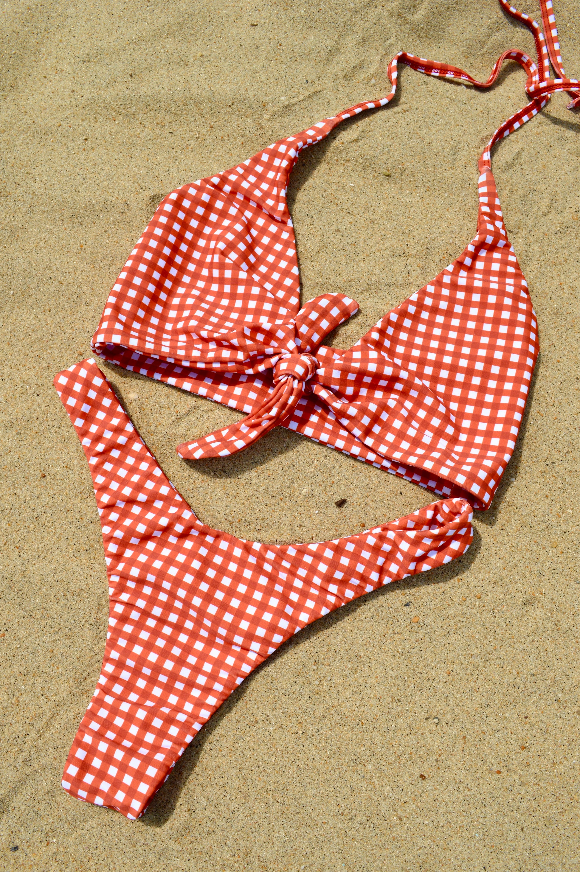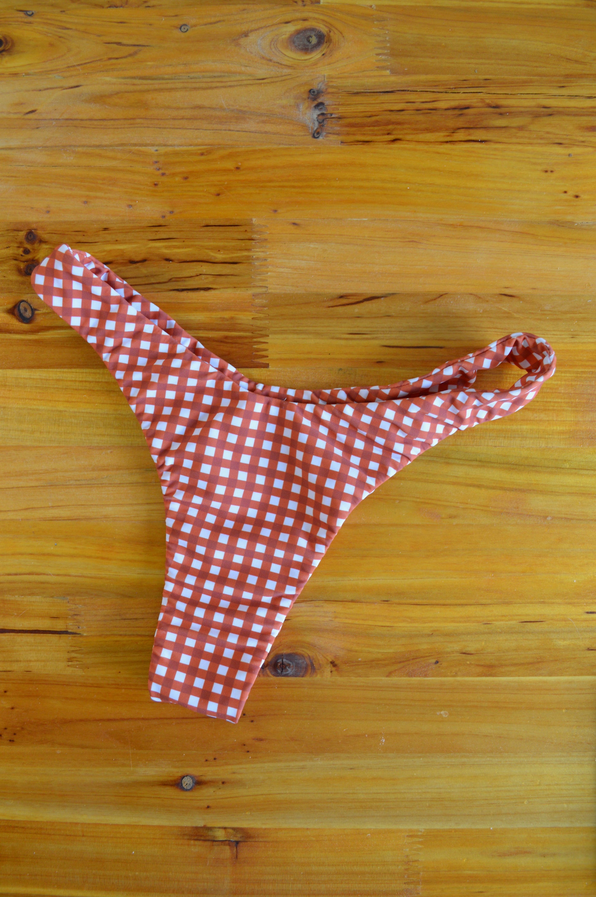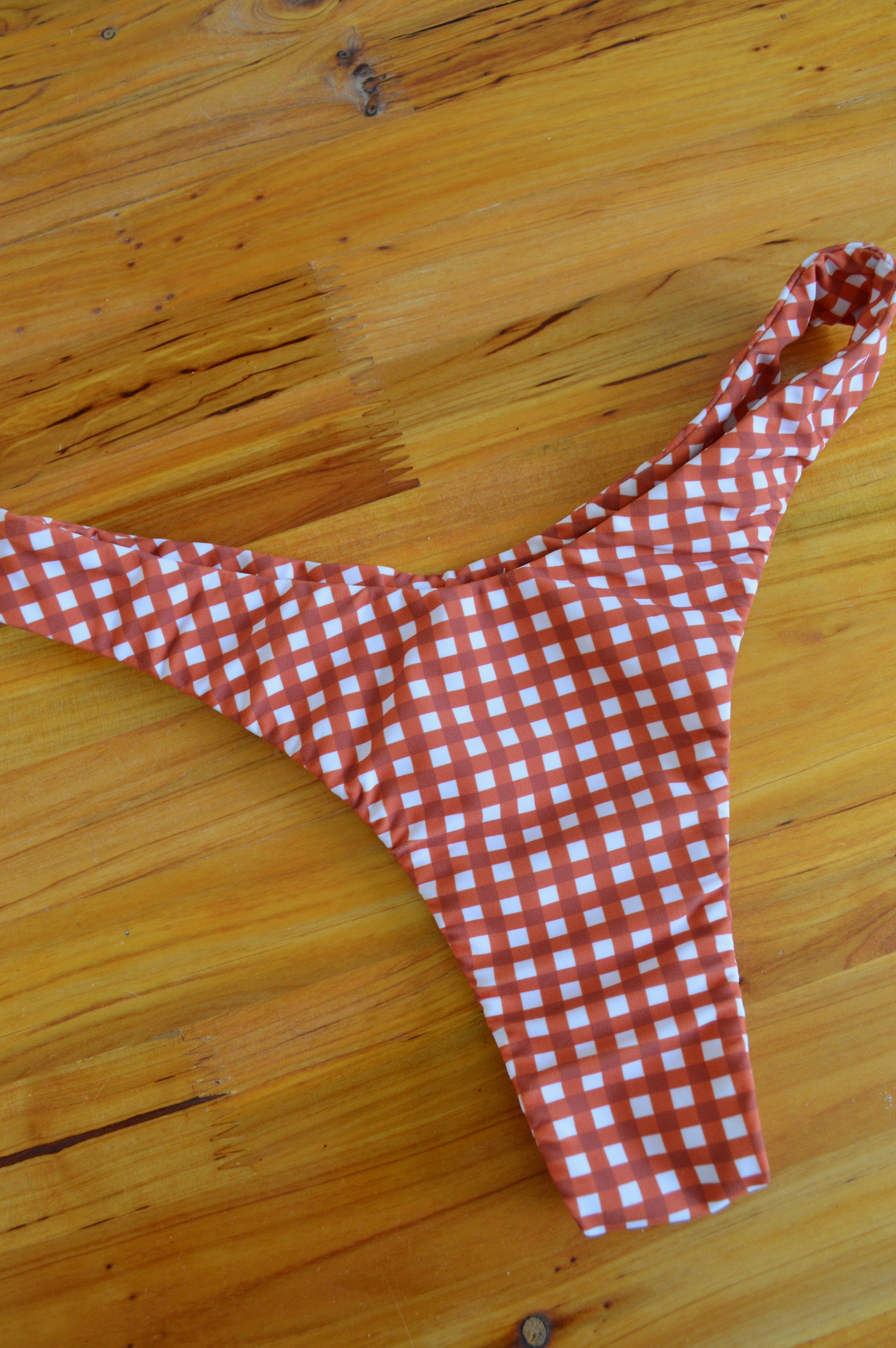 Say hello to your new go-to bottom. With Brazilian-style coverage and a comfortable mid-rise fit, this bikini bottom delivers a confident silhouette that highlights your curves in all the right places. Made from luxe 4-way stretch fabric, it hugs the body without digging in—perfect for beach days and sun-drenched getaways. Finished in a white and burnt orange gingham pattern, it’s sweet, spicy, and effortlessly chic.